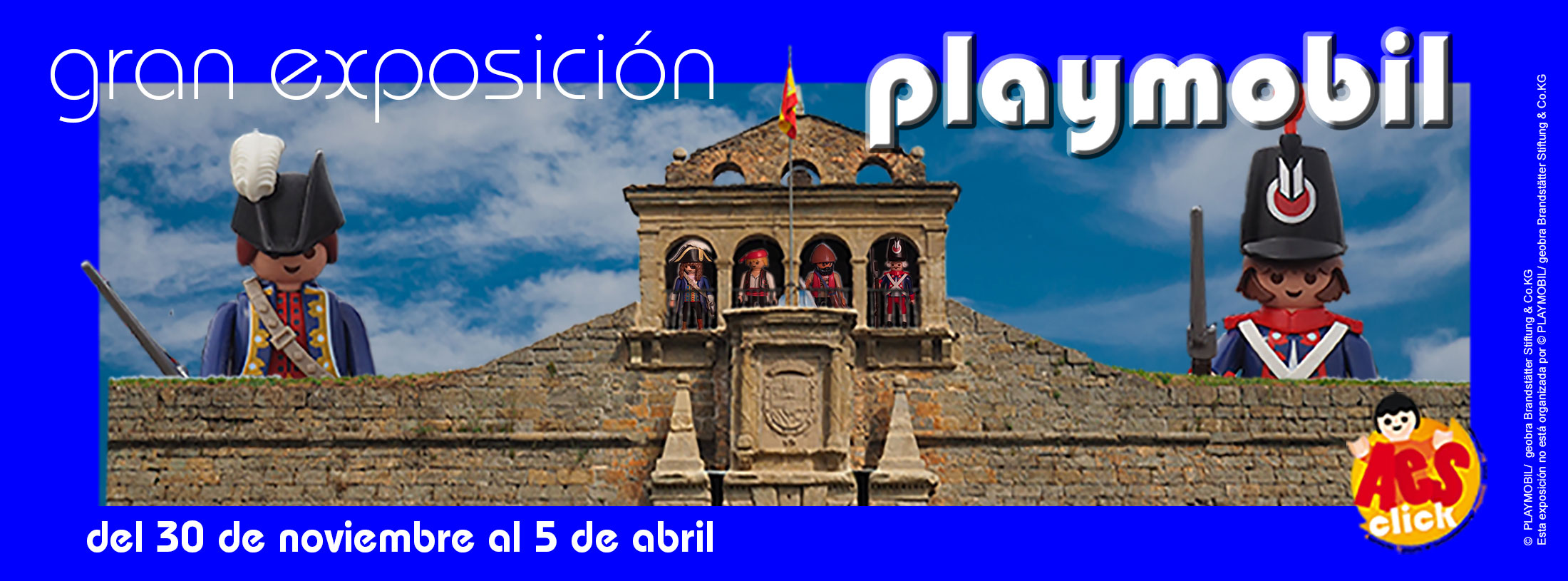 Exposición temporal de más de 160 metros cuadrados de dioramas y miles de pequeños clicks de Playmobil en el Museo de Miniaturas Militares en colaboración con la Asociación Española de Clicks (AESCLICK)  y el Ayuntamiento de Jaca. Disfruta de 8 escenarios diferentes con más de 8.000 piezas de playmobil.