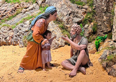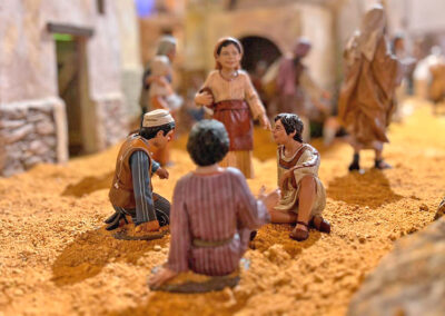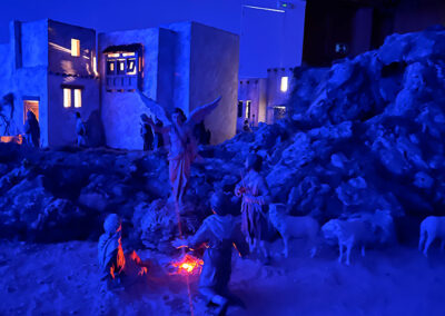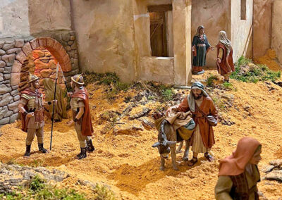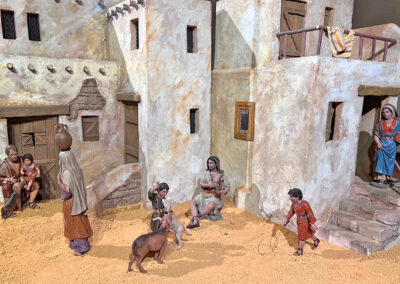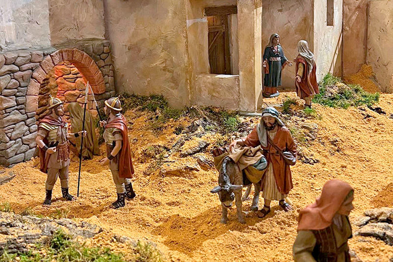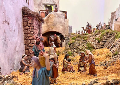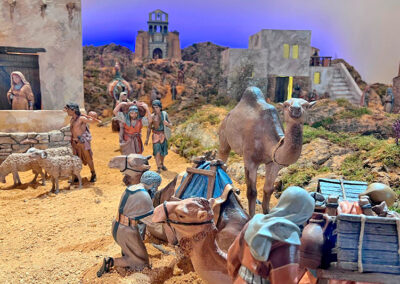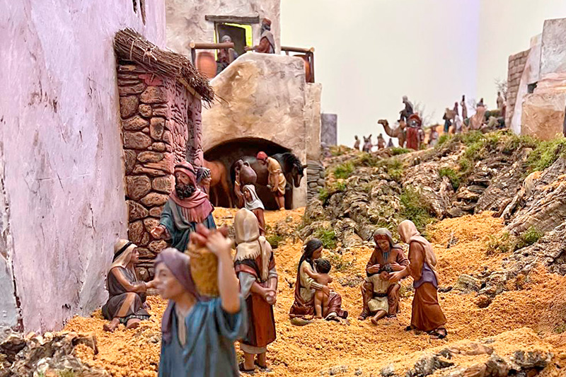 Nuestro belén es el resultado de años de trabajo, en los que se ha ido ampliando en superficie, construcciones y personajes de barro. Responde al deseo de que la Ciudadela tuviese una colección propia de figuras de belén, que se expusiera cada Navidad y marcase los tiempos dentro de las visitas turísticas en el interior de sus murallas.